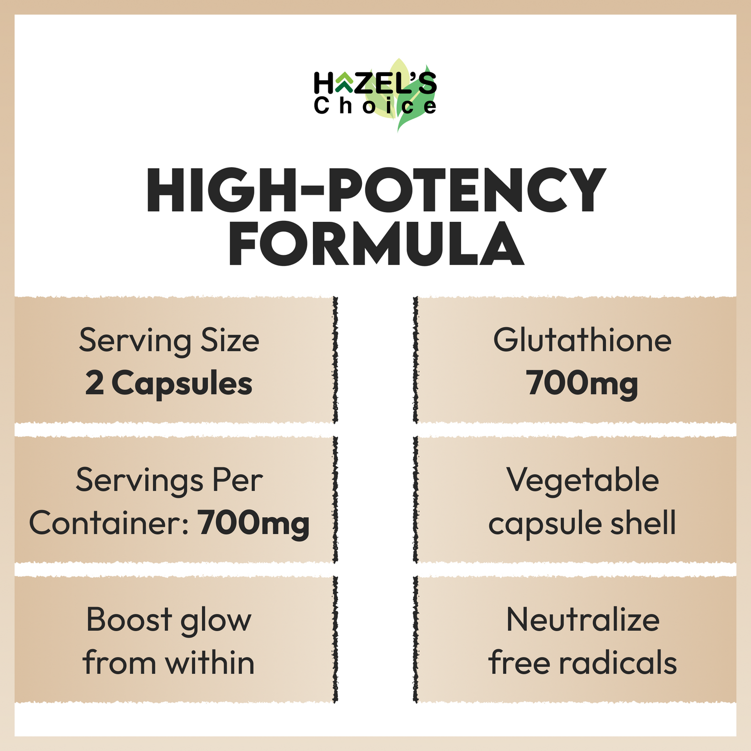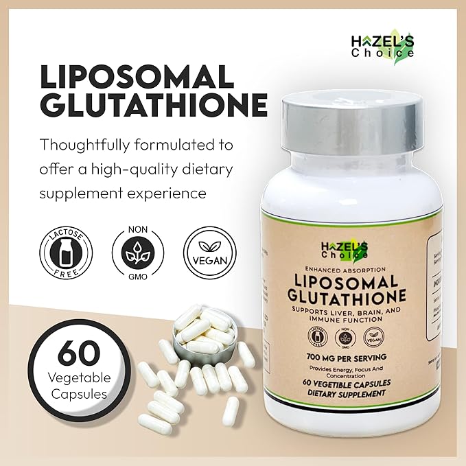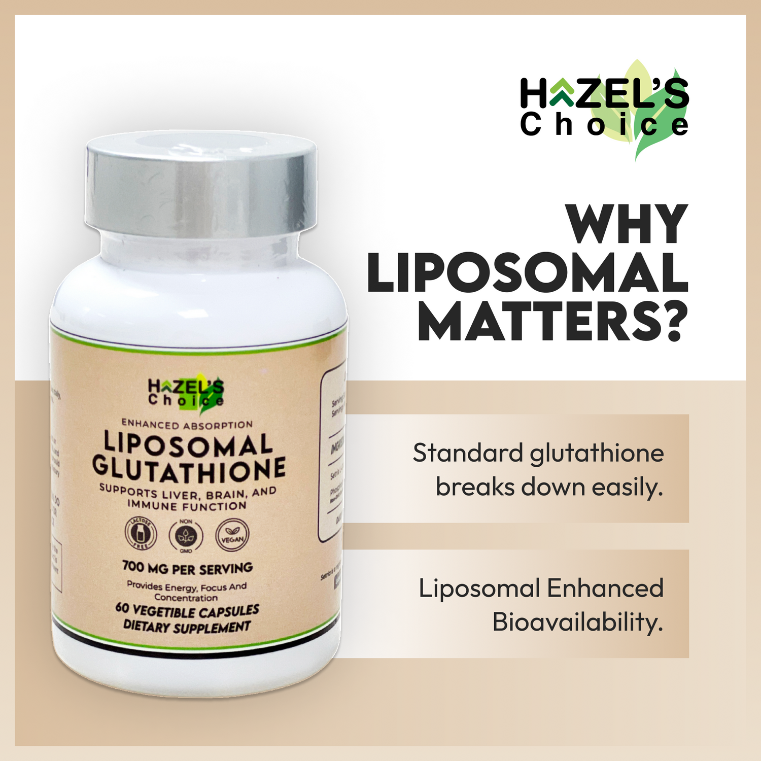 HAZEL'S Choice Liposomal Glutathione 700mg | 60 Vegetable Capsules | Vegan, Non-GMO, Lactose-Free | Plant-Based Format